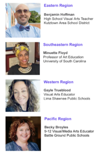 We are pleased to announce the recent NAEA Board of Directors election results and would like to congratulate the incoming Regional Vice Presidents–Elect. NAEA Regional Vice Presidents represent art educators from each of the Association’s four geographic Regions: Eastern, Pacific, Southeastern, and Western. These leaders will step into their roles as Vice Presidents–Elect at the close of the 2026 NAEA National Convention, and will then become NAEA Vice Presidents in 2028.